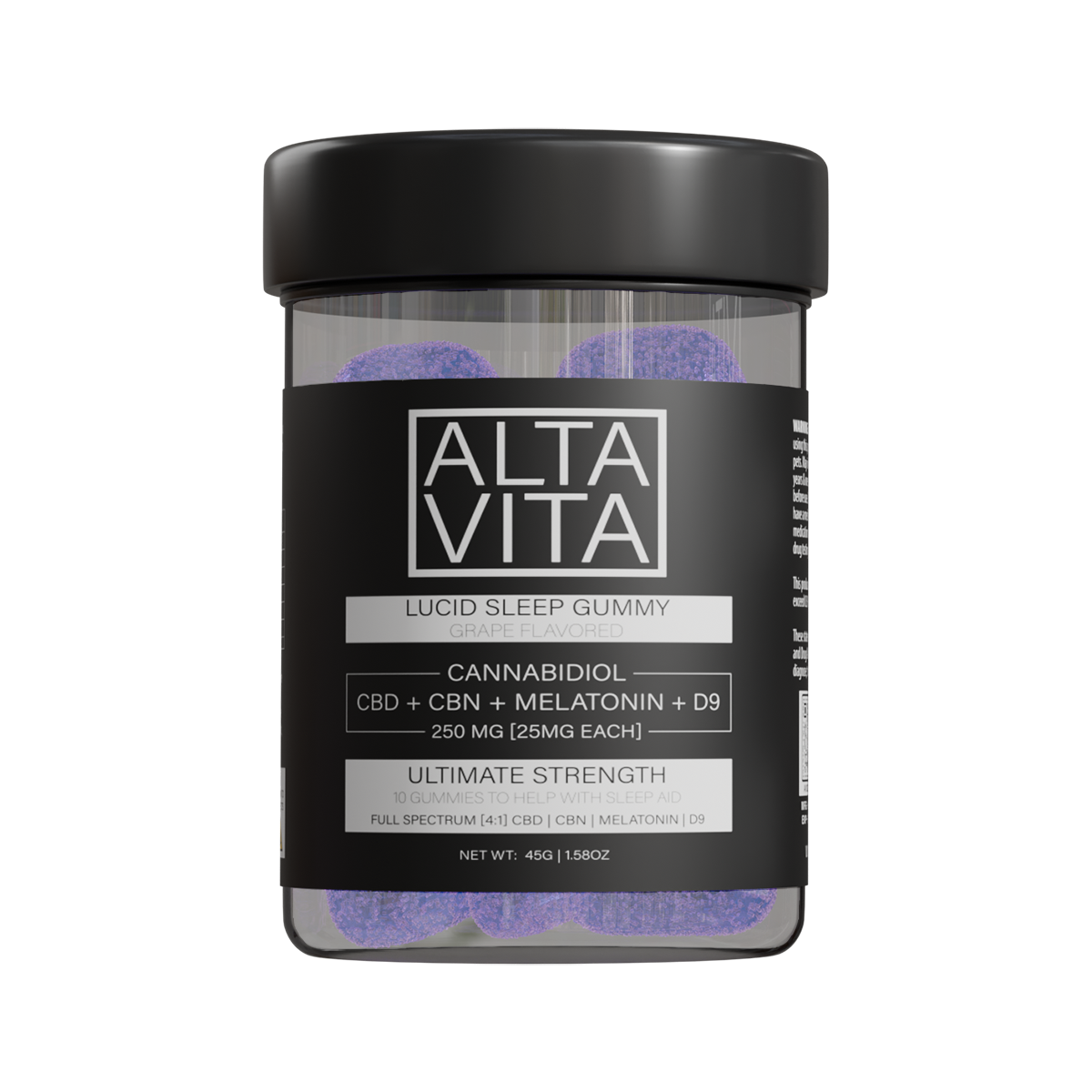 Get the ultimate strength of restful sleep with Alta Vita Lucid Sleep Gummies. Each 25mg gummy is infused with CBD and CBN from Alta Vita for the ultimate relaxation and rejuvenation. Wake up feeling refreshed and ready for the day ahead.